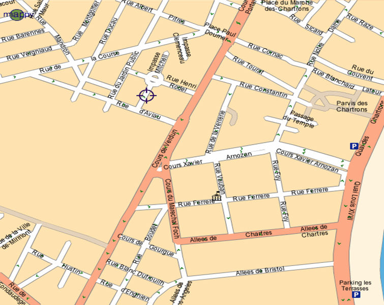 Rue Ernest Godard is located near the center of Bordeaux by the Jardin Public. It is a small street between the Rue d’Aviau and Impasse/Place Mitchell.